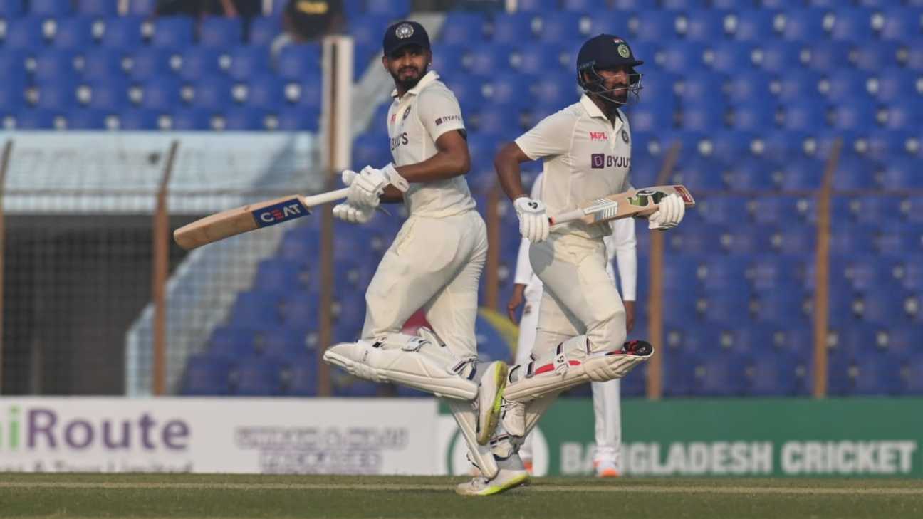 India continued their recovery after being reduced to 48 for 3 in the first session to reach 174 for 4 at tea on the opening day of the Chattogram Test. They were also helped by Nurul Hasan, who dropped both Cheteshwar Pujara and Shreyas Iyer. The two were unbeaten at the time of the interval, their fifth-wicket stand worth 62.