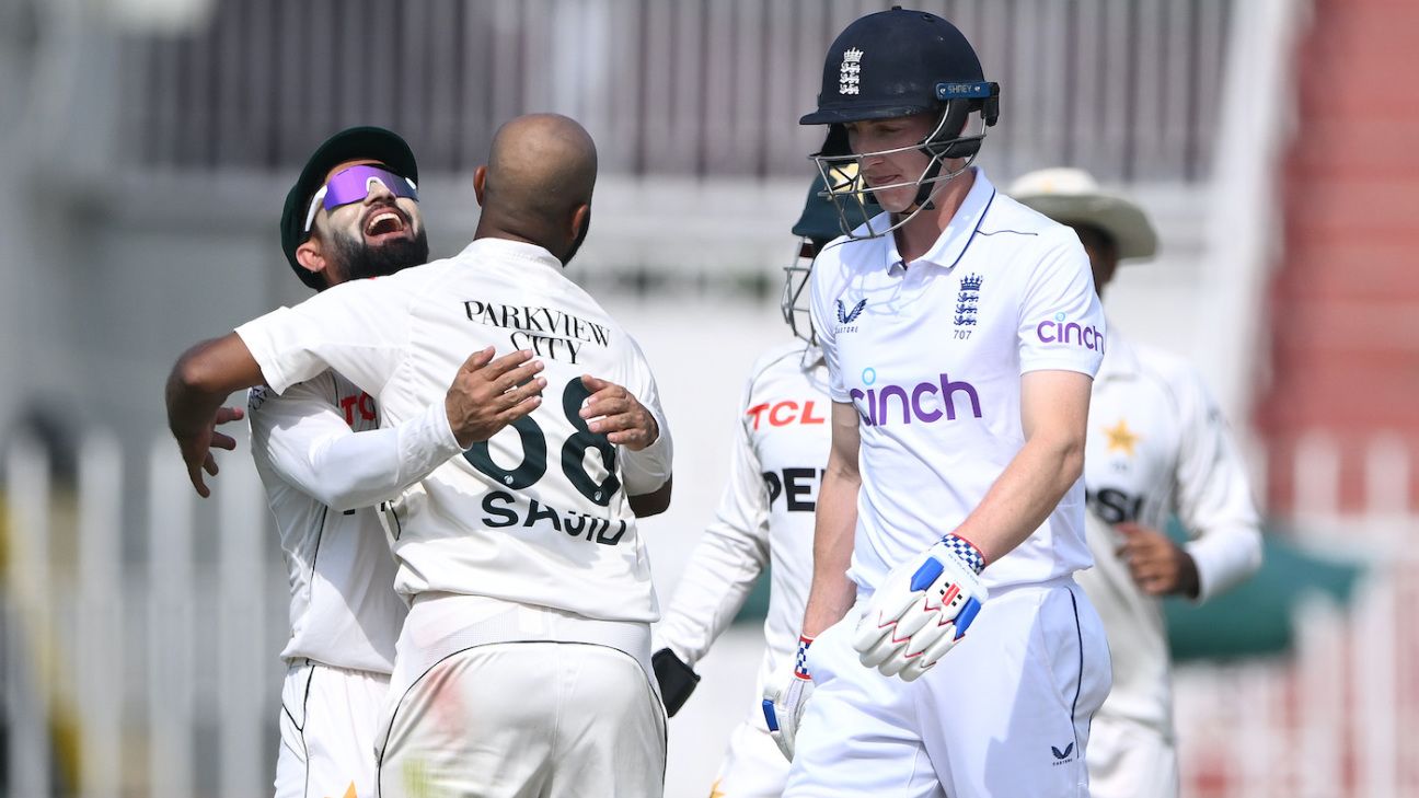 Root was understandably irked by the manner of his demise, but he was on the last step of the podium when it came to being on the wrong end of misbehaving deliveries. Duckett’s innings was ended with one on the boot from Noman which left him utterly perplexed.
